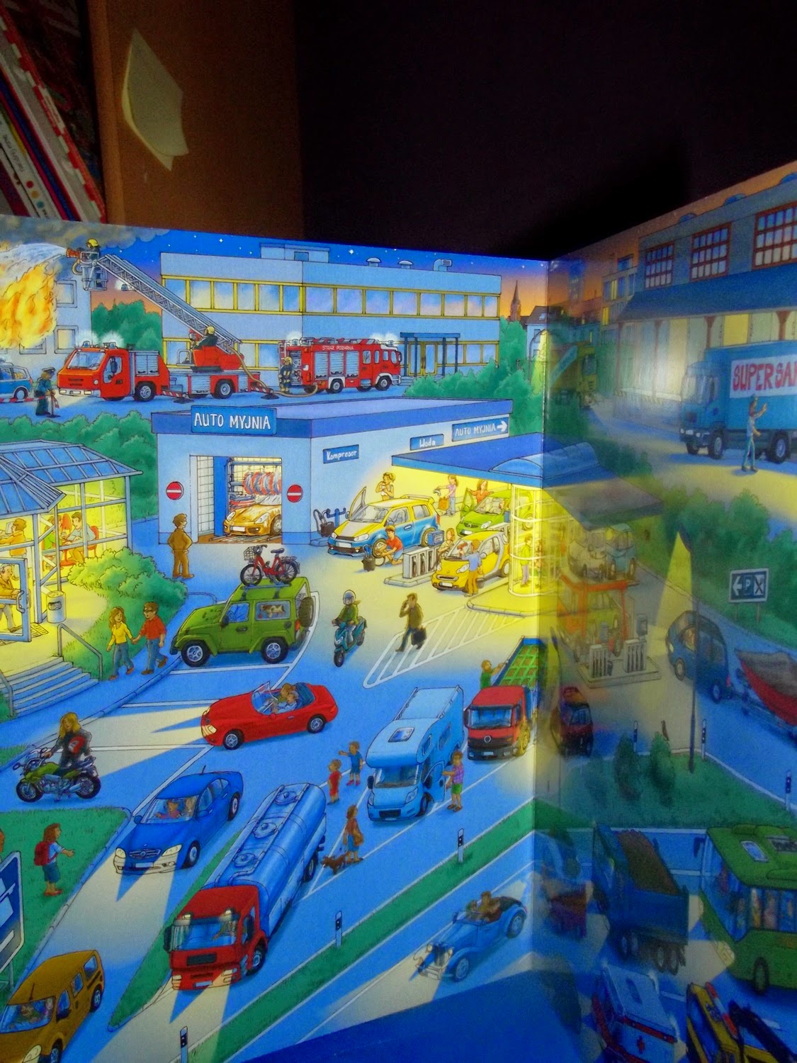 jak dla mnie - b. mało postaci, w zasadzie same pojazdy, mało wątków do śledzenia jest - w porównaniu do Aut i Na budowie, gdzie poza pojazdami jest dużo bohaterów jeszcze. Moim zdaniem jest strasznie nudna - przy Czereśniowej długo odnajdywaliśmy nowe wątki, dopatrywaliśmy się kolejnych szczegółów, w Autach i Na budowie, też sporo się dzieje, a tu jakoś tak ubogo jak dla mnie...