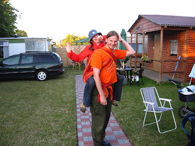 Ja ilekroc patrze na te fotke, to sama sie z siebie smieje :) Nie dosc, ze jedna piers wyszla mi mi na tym zdjeciu jakby byla jakims arbuzem, rozwiam po prostu absurdalny :shock: , to moja pierwsza proba wiazania malego na biodrze przy uzyciu dlugiej, wiazanej Lisy tez nie jest powalajaca... Moj kochany 5 miesieczny synek tez jest mocno zdziwiony tym co ta jego zwariowana mama wyprawia :?
