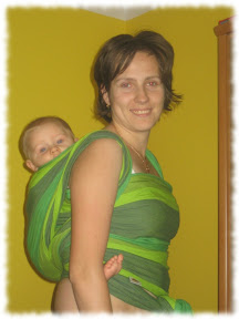 spróbowaliśmy jeszcze raz i poszło o niebo lepiej. wprawdzie wiązałam strasznie długo bo jakoś nie mogłam okryć dziecka chustą na plecach, ale ja tak czasem mam (moje krótkie łapki).