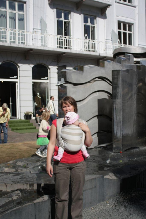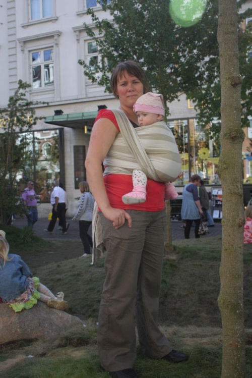 Zakochałam się w chustach jeszcze bardziej, bo akurat jak byliśmy na mieście to odbywały się jakieś imprezy i było mnóstwo ludzi i nawet zrobili mały park w środku miastai chusta pozwoliła nam swobodnie się przemieszczać i nie musieliśmy się męczyć z wielkim wózkiem w takiej ciasnocie tak jak wiele osób tamtego dnia. Wzbudziliśmy generalnie duże zainteresowanie. Zebraliśmy mnóstwo miłych i życzliwych uśmiechów. Chyba byliśmy dodatkową atrakcją jako jedyni z dzieckiem w szmacie