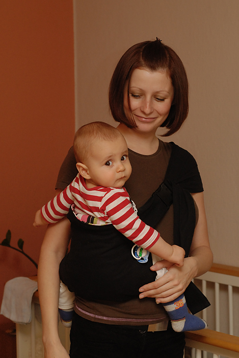 Przede wszystkim dziękuję za możliwość wypróbowania. Julianek waży 9kg, za pierwszym razem wyszliśmy w MeiHip do przedszkola po Kamilka. Już na schodach zauważyłam że słabo pas dociągnełam i chciałam poprawić troszkę, niestety klamra się wypieła. Ok mój błąd nie powinnam takich trików robić z małym w nosidełku ale niestety to sprawiło, że już przez cały czas rękę trzymałam na pleckach Julianka i nie wiem jak zachowałaby się przy sporo cięższym dziecku więc Kamilka (13kg) nie zaryzykowałam włożyć. Efekt był taki, iż po pół godziny myślałam, że mi ramię odpadnie. Tak więc nosidło nie jest na pewno dla mnie. Za drugim razem wyszliśmy na spacer, dobrze rozłożyłam częśc pasa na ramieniu i było już lepiej nosiliśmy jakieś 40min.