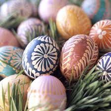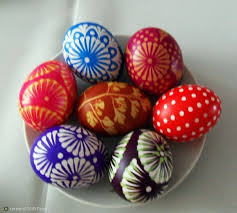 Ja mam pomysl, z pisanek wlasnie. W Pl malowalam jajka goracym woskiem uzywajac szpilki i wychodzilo bardzo ladnie, takie "lezki" zgromadzone we wzorki, glownie centralne. Zdjec swoich dziel nie mam, ale zaraz poszukam na necie.